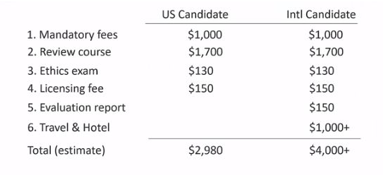 在我看来,排名第一的成本是“重考”的成本。如果你不及格,你需要支付考试费用,相关的交通费用,并且有可能还需要USCPA课程续费/更新的费用。再次学习教材/知识的时间和精力也是巨大的机会成本。