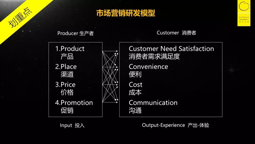 让我来告诉大家,P和C都很重要,因为每一个P可以促进每一个C的改进。这就是我要教给大家的市场营销研发模型。