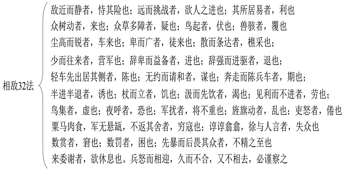 相敌32法可以获得敌情,这和《战争论》中侦查的作用相同。