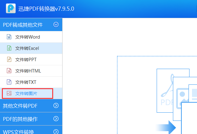 2、工具安装完成之后运行使用,点击PDF转成其他文件下级菜单中的文件转图片按钮。