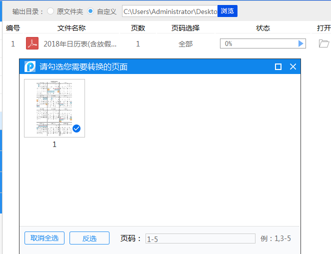 4.文件添加之后,点击界面中的全部按钮,选择需要转换的页面,然后对其进行转换。