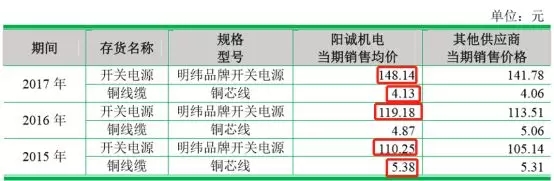 交易金额虽然较小,但阳诚机电对湖南宇晶的销售价格普遍比市场价格高,6种产品中5种高于其他供应商的销售价格。