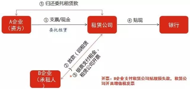 融资租赁公司从事票据贴现业务是指A企业(资方)以支票或现金委托租赁公司发放贷款给B企业(承租人),B企业(承租人)用银票支付租金,租赁公司将所得的银票向银行贴现的钱归还A企业(资方)的委托租赁款的业务模式。其中A企业与B企业通常为母子公司关系。