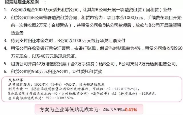 通过以下2个案例,可以看到租赁公司从事银票贴现业务可以给企业降低贴现成本:
