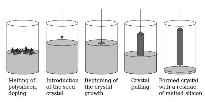 在固体材料中,有一种特殊的晶体结构──单晶(Monocrystalline)。它具有原子一个接着一个紧密排列在一起的特性,可以形成一个平整的原子表层。因此,采用单晶做成晶圆,便可以满足以上的需求。然而,该如何产生这样的材料呢,主要有二个步骤,分别为纯化以及拉晶,之后便能完成这样的材料。