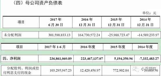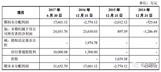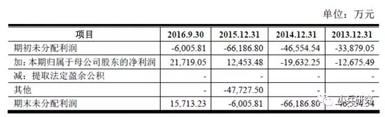 股改时未分配利润在本来为负数的基础上还继续减少,由于暂时只有招股说明书无法准确判断,但有一种可能原因,2015年1-9月公司盈利3,118万元,9月30日股改基准日是母公司未分配利润为1,659万元,母公司未分配利润归零。然后10-12月继续亏损2,599万元,全年盈利519万元与母公司利润表披露相符。