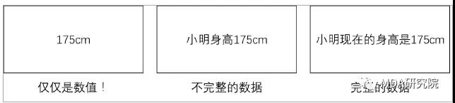 例如,175cm 是数,而不是数据。而当我说“小明的身高是 175cm” 时, 175cm 就是数据。但这个说法还是有欠缺的,因为人的身高是不断变化的,为了精确时间,我们需要将以上的表达表述为 :“小明在某年某月某日某时的身高是175cm”或者说“小明在其 18 岁生日时测量的身高是 175cm”,因为既然是证据,那么就有事物状态的“时间戳”,没有时间戳,这个数据就会变得没有“证据”性。