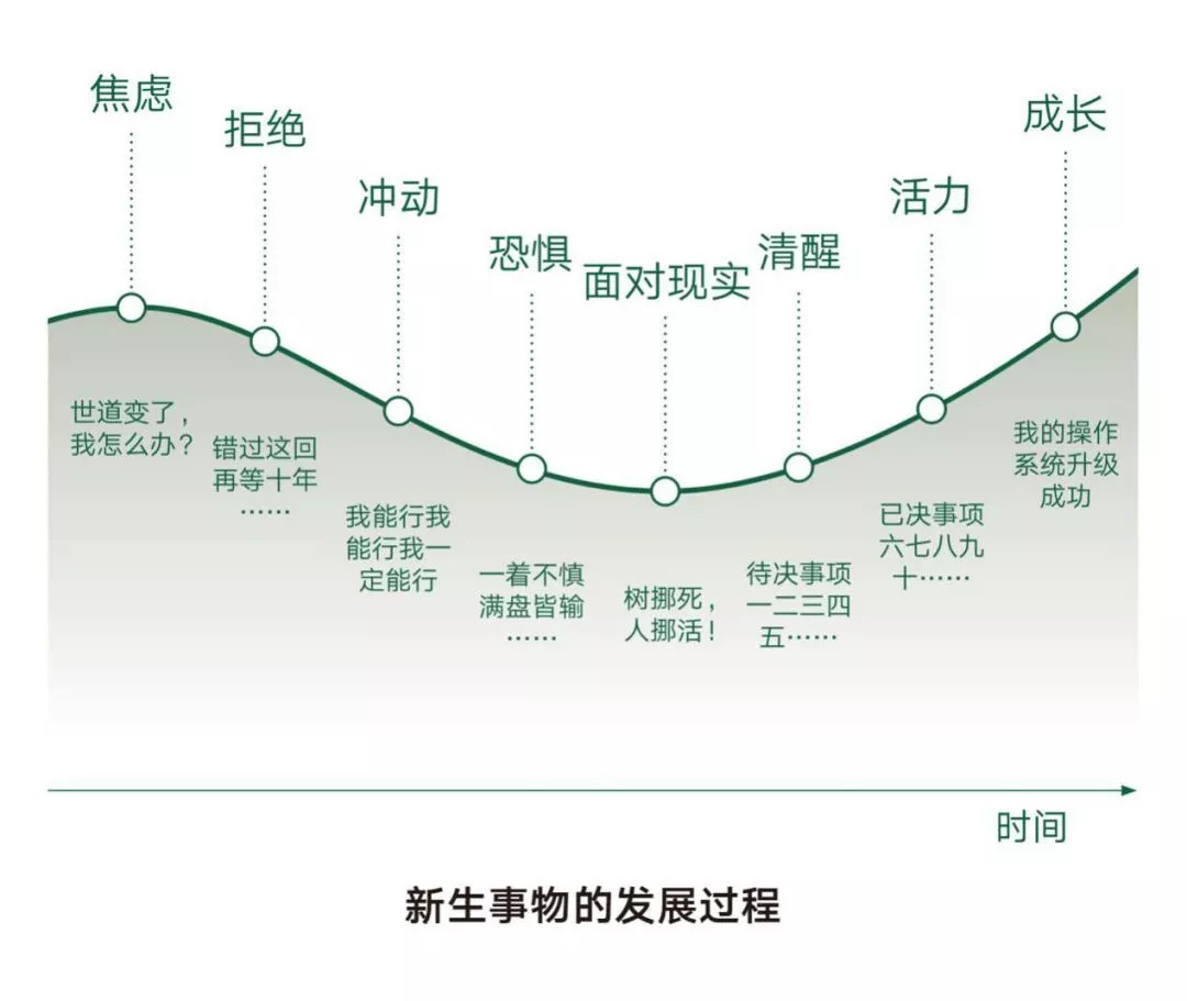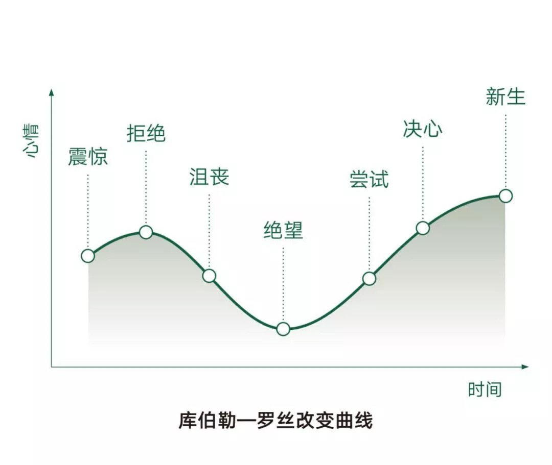 有两个著名的图表,可以帮助你理解更为深刻。一个是“库伯勒——罗丝改变曲线”(Kübler-Ross change curve),一个是“新生事物的发展过程”(Transition Curve)……