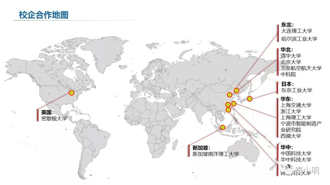 当日,博智林机器人还同香港科技大学、浙江大学等9所知名高等院校在人工智能、智能制造、机器人核心零部件研发等方面达成战略合作,并与8家企业签署了收并购合作协议。这是一个典型的政府-企业-高校多方合作的产业布局系统。