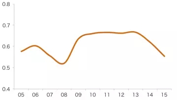 “政府干预”或者“金融抑制”本来就是改革期间金融政策的一个重要特征,当然,改革期间金融体系也一直在市场化的道路上前行,只是速度比较缓慢。作为对比,俄罗斯的金融抑制指数从1990年的1.0下降到2015年0.42,其市场化进程显然要快很多,当然俄罗斯的改革并没有中国成功。2013年底中共十八届三中全会已经提出“让市场机制在资源配置中发挥决定性的作用”、让有效市场与有为政府有机结合,这个决定受到了普遍的欢呼,只是随后的落实十分缓慢,2013年、2014年和2015年的金融指数一直保持在0.60,没什么变化,2015年之后金融市场化的进程可能略有加速。但政府干预甚至替代市场功能的现象,仍然十分普遍。