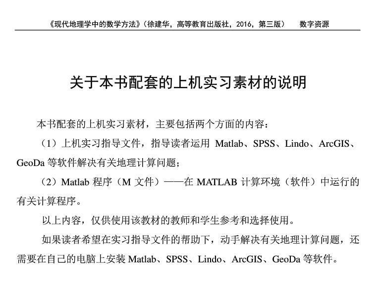 现代地理学中的数学方法(第三版)——上机实习素材(上机实习指导文件 Matlab程序).zip
