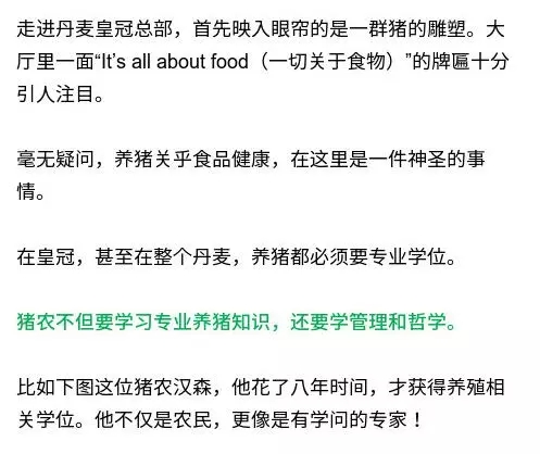 曾经有人这样形容这家养猪场:我佩服双汇唐人神,但给我最大震撼的却是丹麦皇冠!