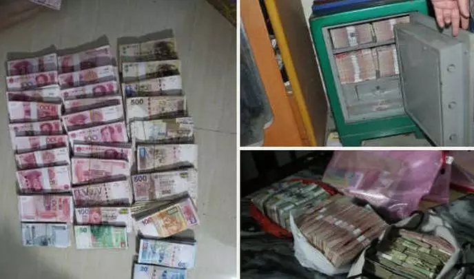 (2016年广东警方“天网”行动,打击地下钱庄现场照片。)