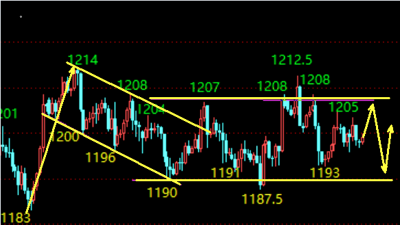 整体结构上,4小时整体偏于弱势,但有修复的迹象,所以对于接下来的走势,依悦建议还是和之前一样上方可以重点留意1204-1208区域的压力。如果本次再次站上这里,修复可能会演变为二次反弹。下方关注1195至1193的支撑。操作莫静建议还是区间低多高空去看。