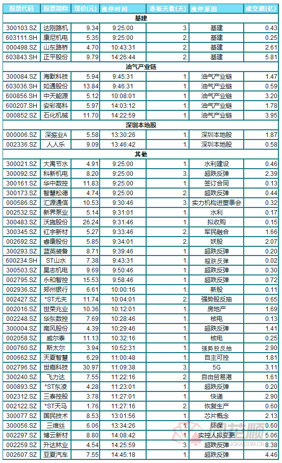 油气相关产业链板块持续走强,海默科技(300084),中天能源(600856)、如通股份(603036)等涨停首板;