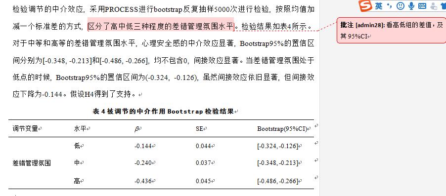 求助大家~ spss有调节中介验证,编辑老师备注这句话什么意思呀~我需要怎么修改,谢谢1