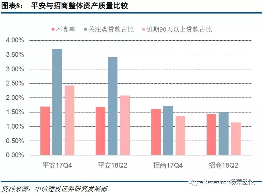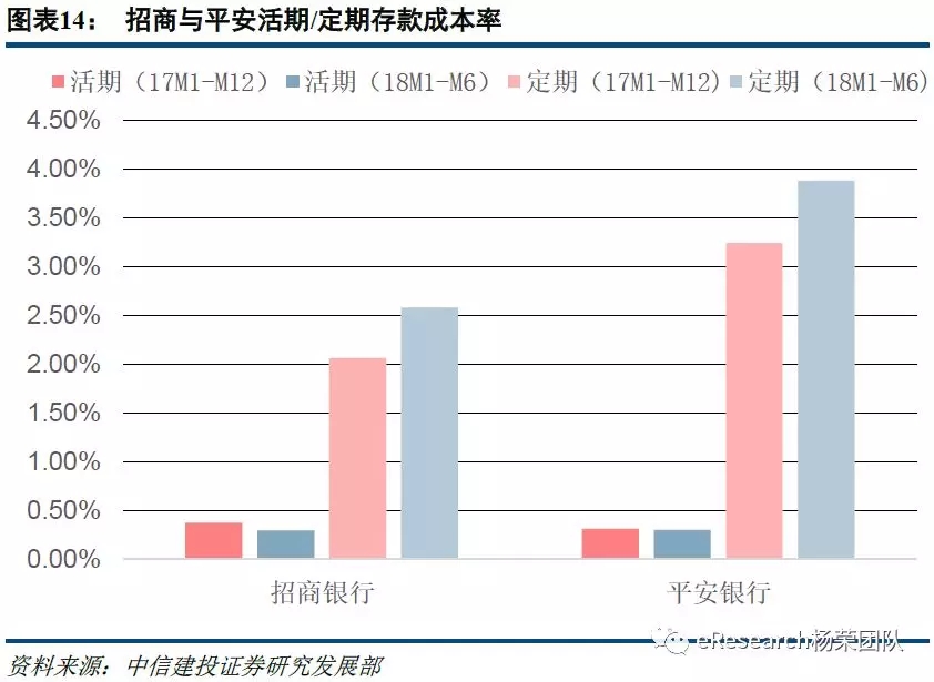 上半年,招商和平安两家以后再零售负债端均做了比较大的工作,零售存款占总存款的比重都较年初有所提高。截止2018年6月末,招商、平安零售存款占比分别达34.65%和18.22%,分别较年初增长1.72和2.45个百分点。