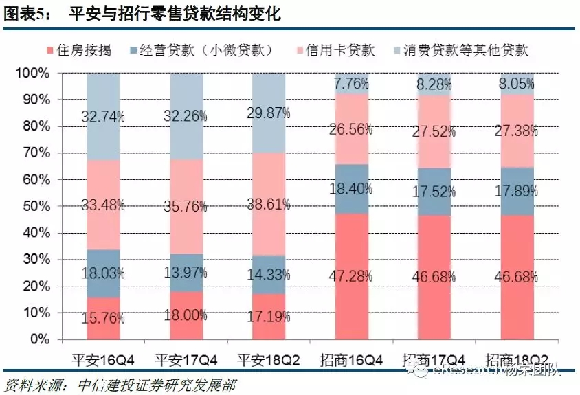 (三)零售贷款结构变化比较:招行稳定,平安信用卡业务大发展