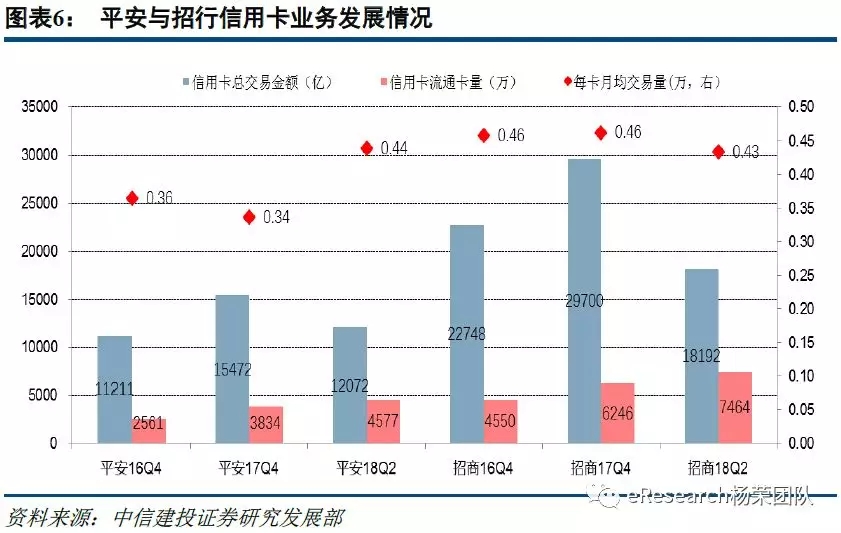 1. 每卡月均交易量平安提高30.72%,招行降6.10%