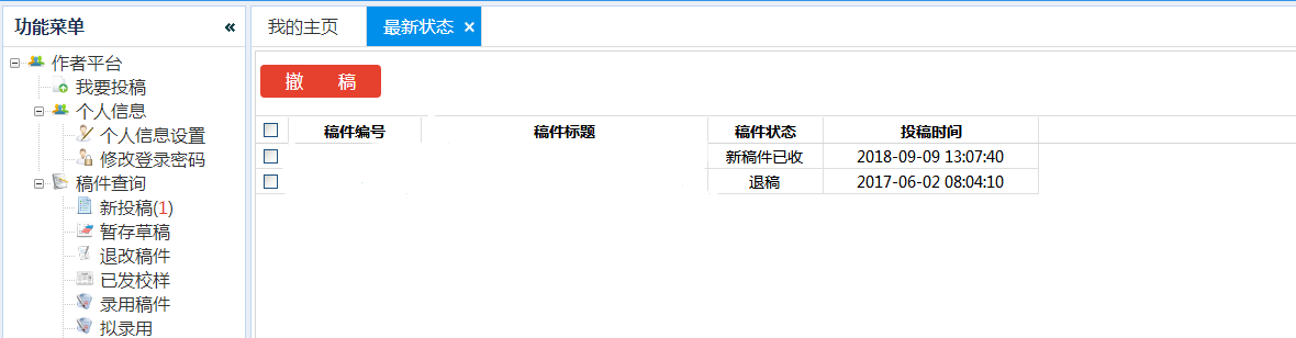 october1109 发表于 2019-1-8 11:19 我在系统投稿之后,系统显示“新稿件已收”,但是点开投稿详情,却看不到上传的文章附件,请问这种情况正常 ...