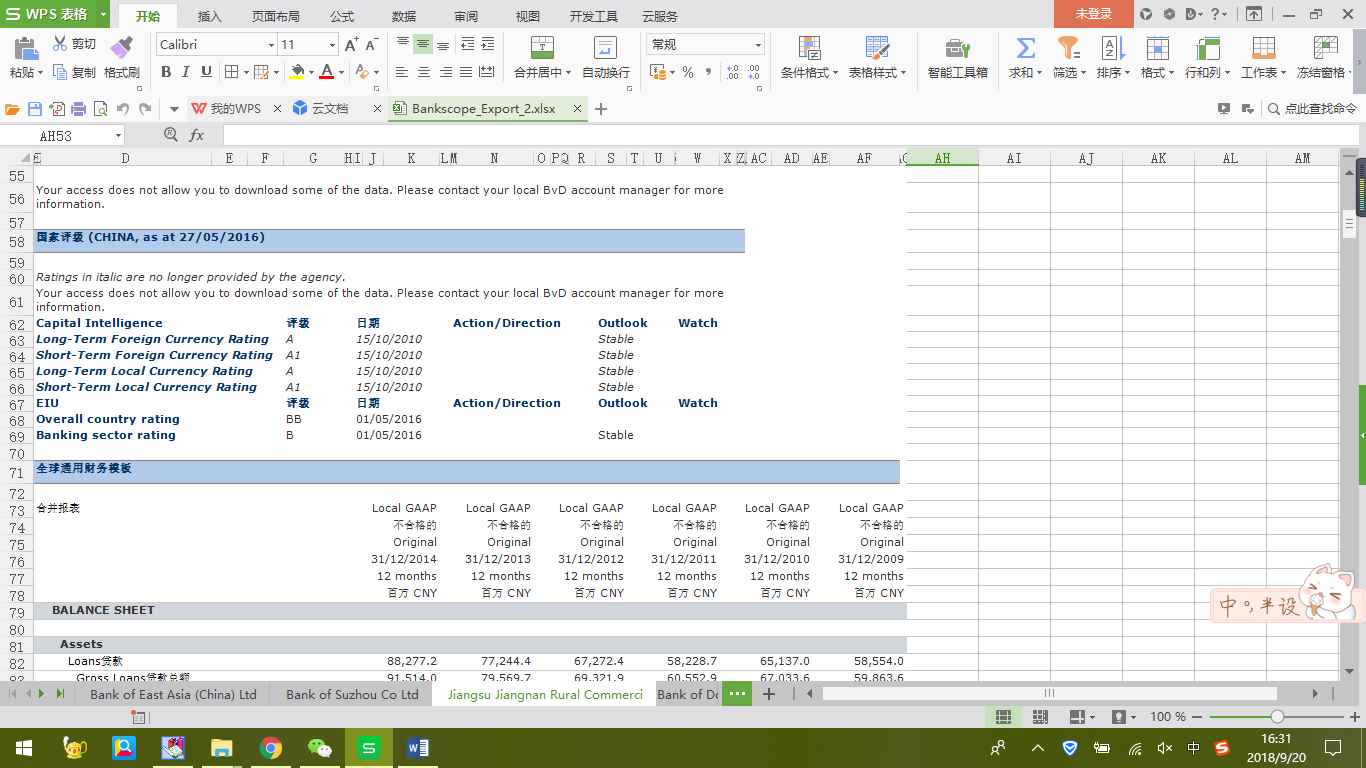 唯一的缺点就是:一个银行一张Excel工作表,但值得安慰的是bankscope里面的指标都在上面了