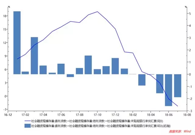 虽然2017年时金融去杠杆被不断强调,但实际上去年非标增速非常快。数据显示,去年非标不仅同比增速非常快,增量也很大。直到今年,非标才出现了明显收缩甚至负增长,拖累了社融。