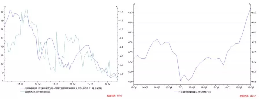 除了机构风险偏好下滑外,利率双轨制矛盾日趋明显是另一个主要问题。在资管新规发布前,表外产品利率相对较高,又有固定期限和预期收益率,实际上就是类存款产品。相比之下,存款就失去了吸引力。存款利率没有竞争力,银行客户经理往往就需要通过人情攻势拉存款,虽然可以有一点改善,但无法扭转存款稀缺的趋势。