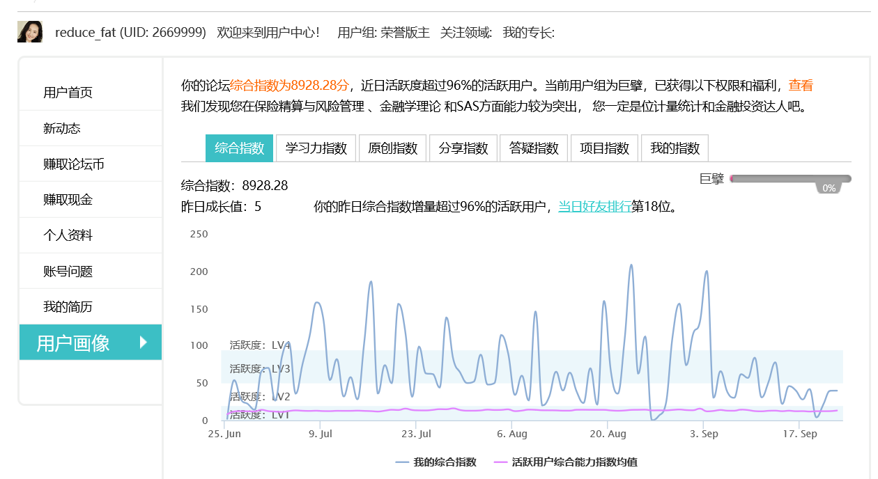 以前没怎么在意有这个16年后加的论坛综合指数趋势图。 今天偶然打开一看竟然有8900多指数,还是最高级巨擘(看附件)。 受宠若惊啊!
