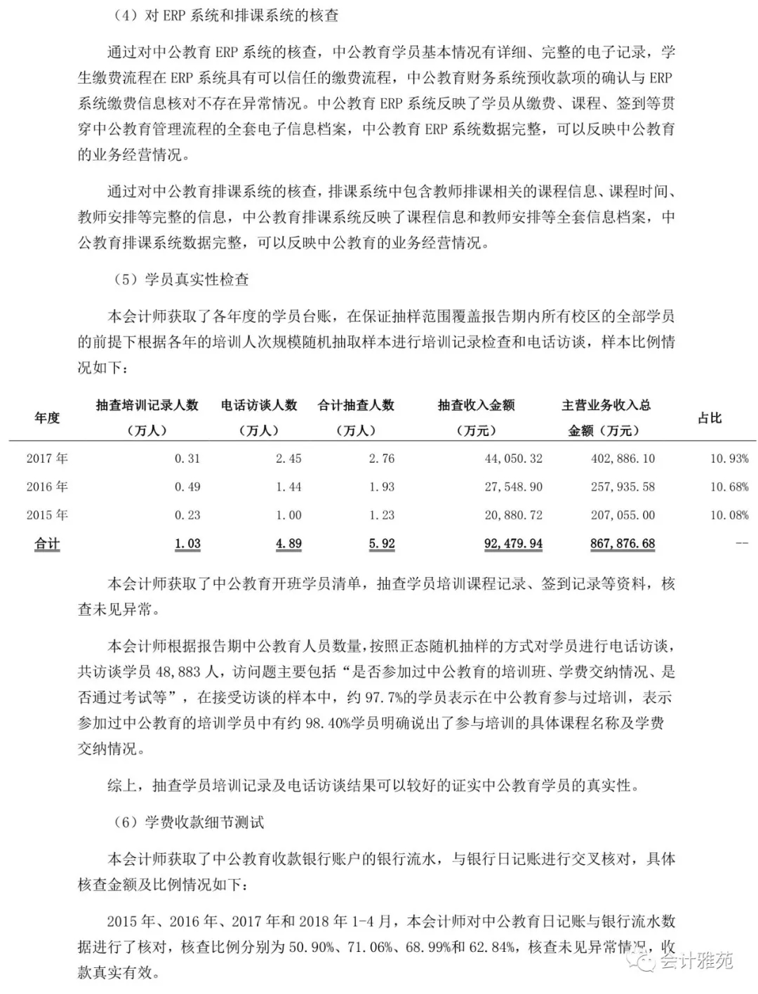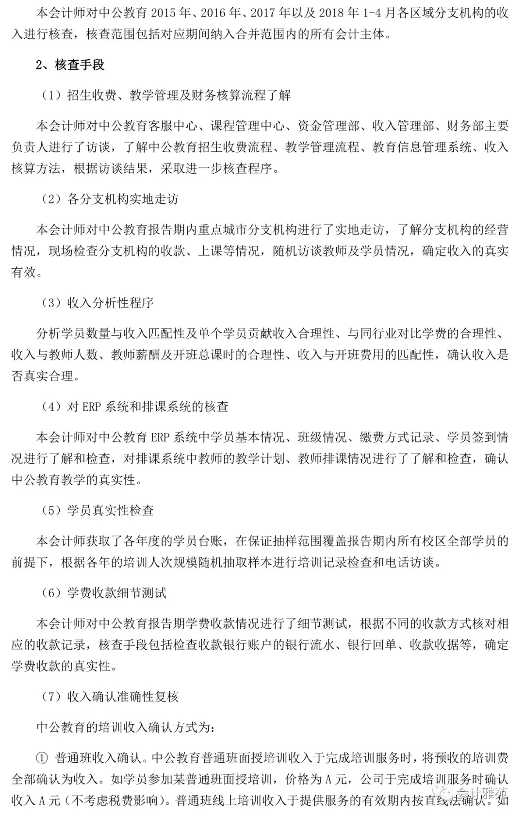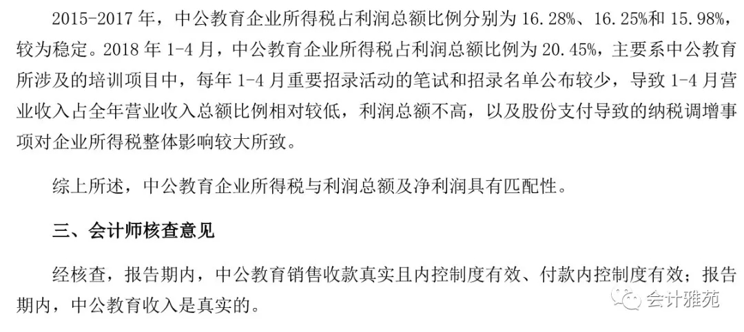 中公教育收入真实性专项核查报告