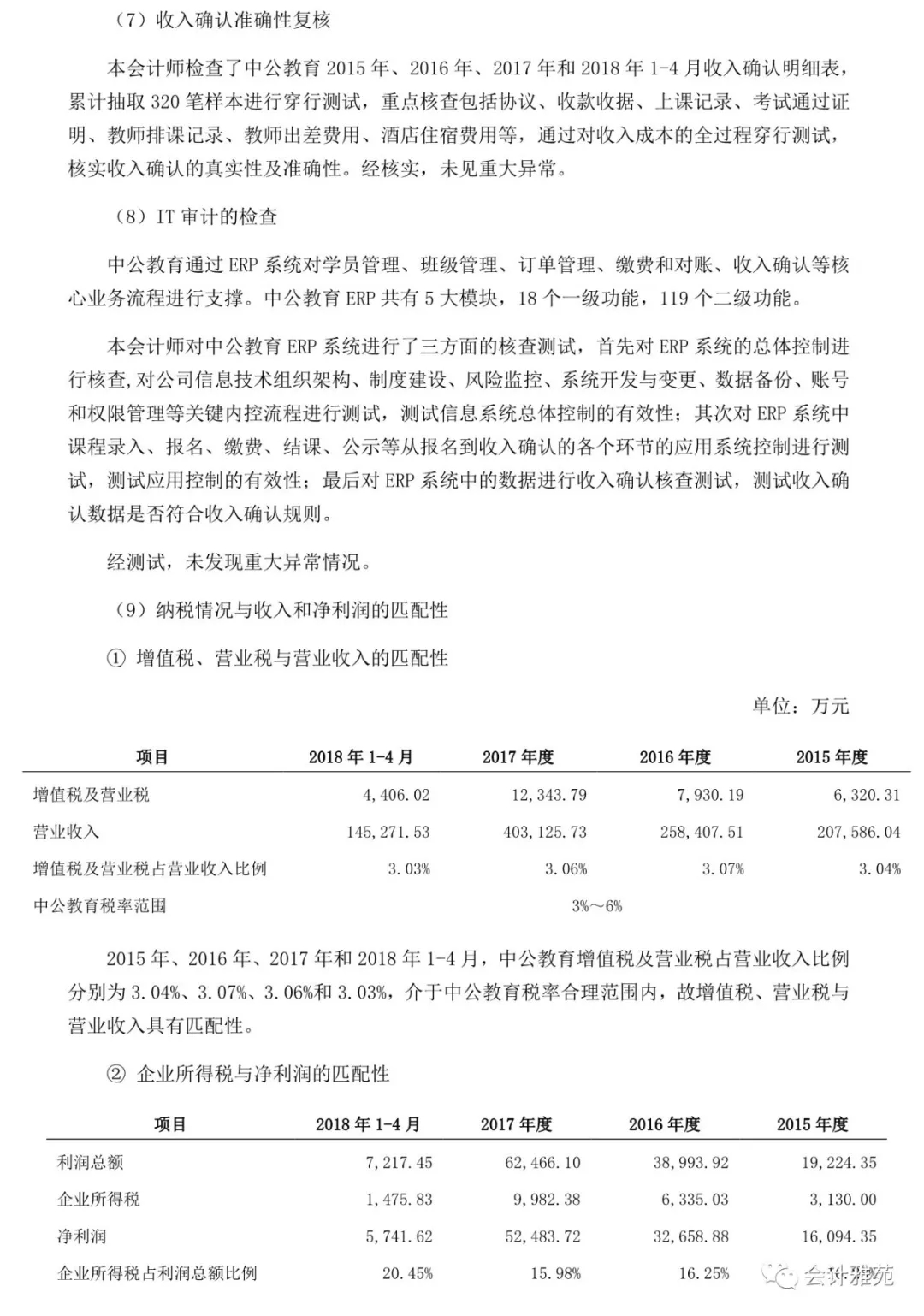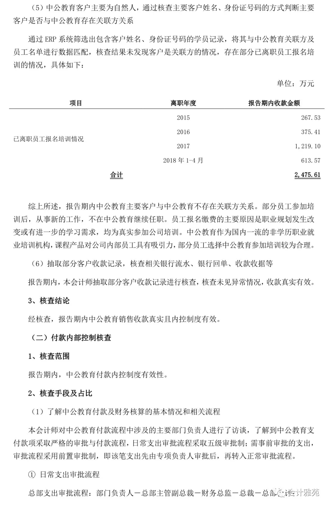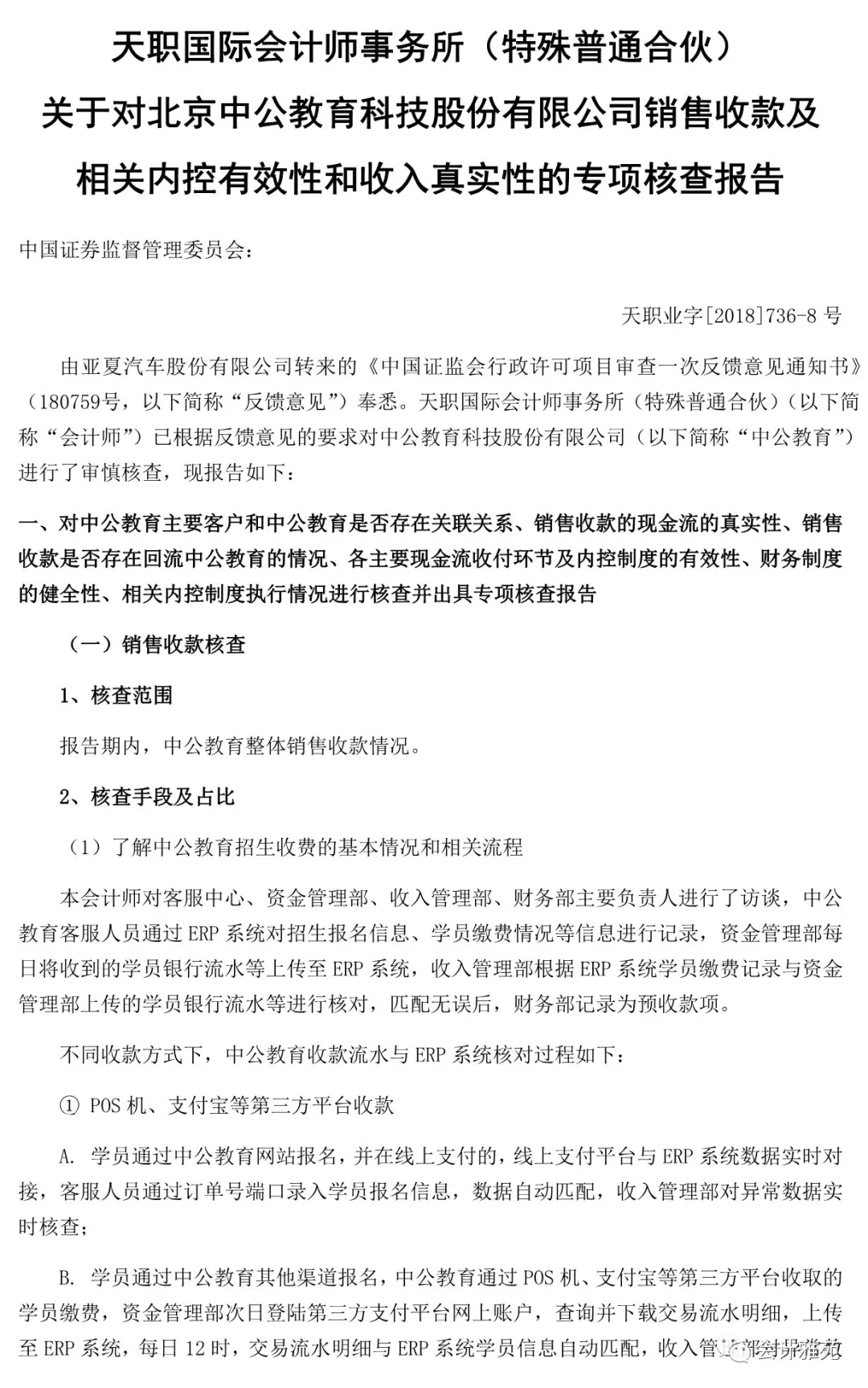 中公教育收入真实性专项核查报告
