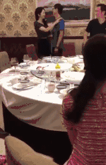 视频显示,廖蕾在酒桌上和一个中年男人搂脖抱腰,长时间四肢交缠,耳鬓厮磨,尺度极大,周围人却熟视无睹。