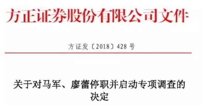 方正证券内部文件显示,公司执委会决定取消马军团队本年度参加新财富评选以及其他社会奖项评选的资格,并成立专门的调查组,启动对“马军事件”的专项调查,并根据调查结果,从严问责处理。