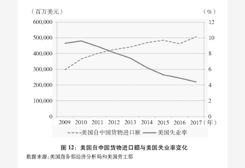 图12:美国自中国货物进口额与美国失业率变化新华社发