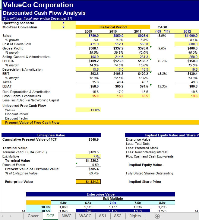 Asdom 发表于 2018-9-26 20:21 书中DCF例题Excel完整版_投资银行:估值、杠杆收购、兼并与收购