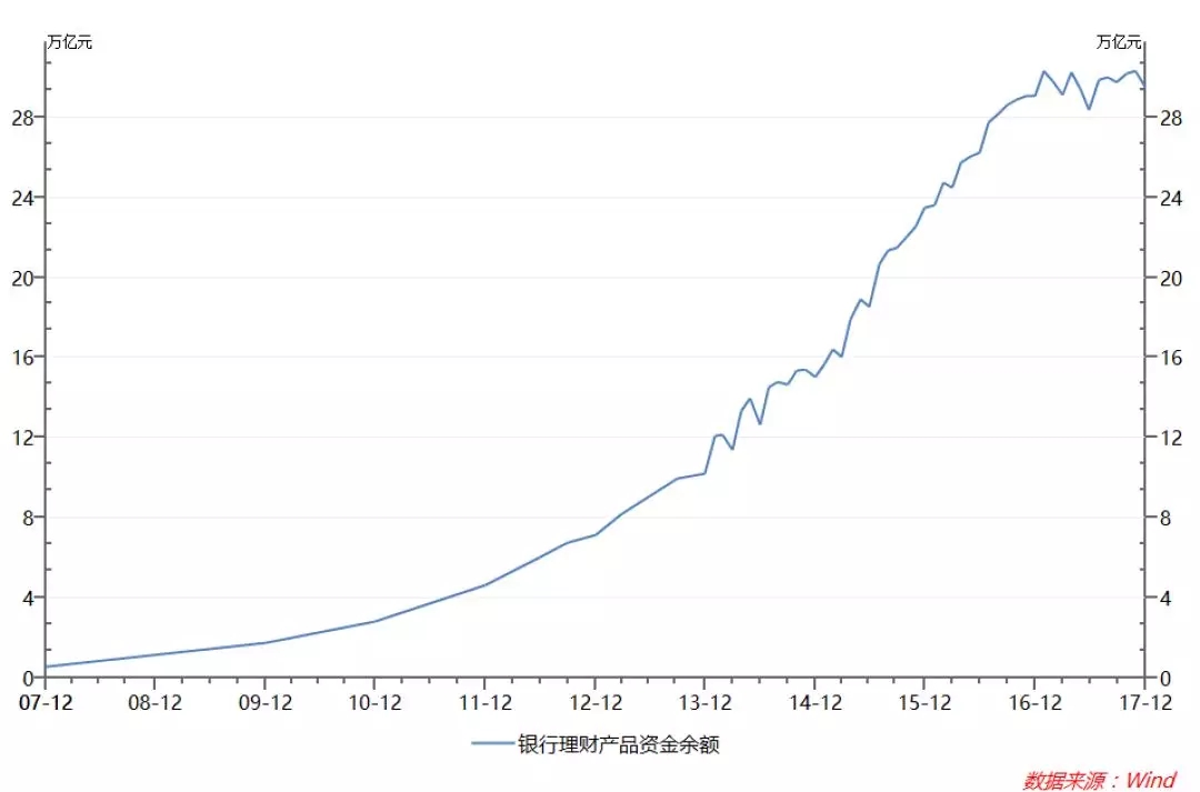 不知不觉中,在2016年底,全行业理财规模创出了30万亿元的新高,仅用一年半时间怒增了10万亿元。而且,很多中小银行也开始参与,它们的风险管理能力更弱。若再放任,行业风险不可估量。