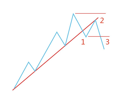 在上升趋势中,如果价格已经穿越先前的高点而未能持续上升,稍微又跌破先前的高点,则趋势很可能发生反转。