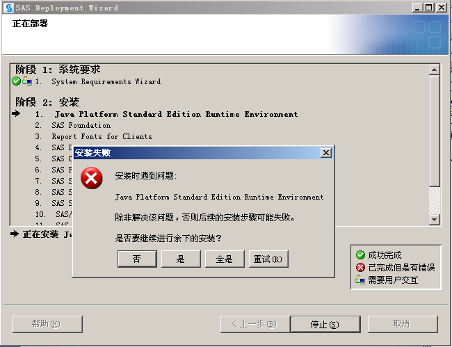 各位前辈,大家好,我在网上下了N个版本的SAS9.2 安装文件,然后安装的第一步就出现了如下错误,选择“是”,然后后面的安装也会出现错误,不知道怎么办啊???写论文急用,还望大家多多帮忙啊!!!