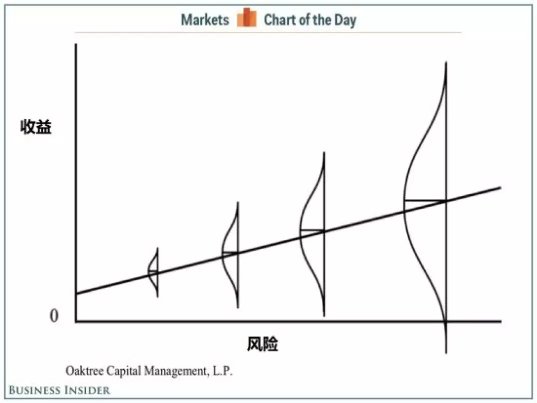 而应该是一个个区间,橡树资本(Oaktree Capital)的马克斯很好地用一张图诠释了风险和收益的关系↓