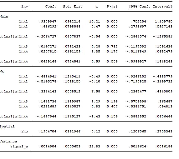 在我的这个spatial2这个文件中,stata使用14MP版本的,省级面板数据,初学者需要先安装相关命令避免无法识别不能运行的情况,首先需要做的就是空间相关性检验和莫兰散点图,本人还提供了一个可编辑的中国地图,对照散点图编辑LISA聚集图,程序生成的地图不太好看,之后提供了关于空间计量模型检验的LM LR以及Wald三大检验,可以完全满足检验的需要,提供了SAR SEM SDM 动态SDM 动态SAR的回归程序,程序最后提供了计算预测值的命令代码,并且探讨了在模型中加入两个以及三个连续变量的交互项的方式,这种在实证过程中将会是非常重要的探讨。