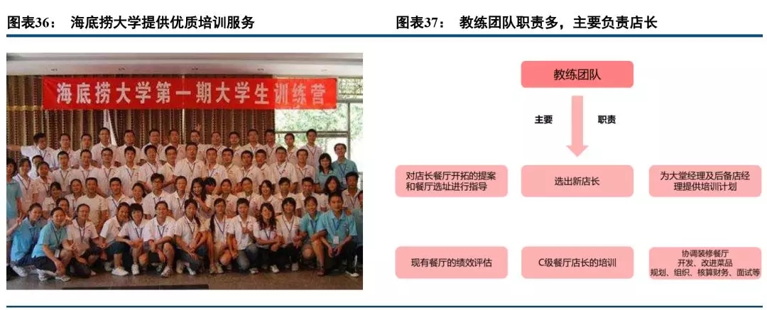 店长可提名徒 弟(通常为大堂经理 )参加海底捞大学举办的培训课 程,以成为店长。该等候选人将接受为期15 至 30 天的课程,其中包括讲座及实践培训,并在课程结束时接受评估。只有通过该等评估的候选人方有资格成为店长。视其师傅的餐厅表现当有合适新餐厅开业时,他们将获提拔为店长。