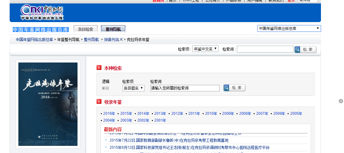 中国年鉴网络出版总库(知网)2001-2016