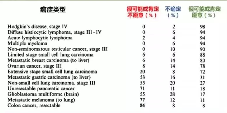 李治中去找了哈佛大学的一个调查:“这是哈佛大学前些年做的一个调查,我相信现在做具体数字会有变化。但无论如何,结论是清楚的:是否接受化疗,主要看癌症类型。