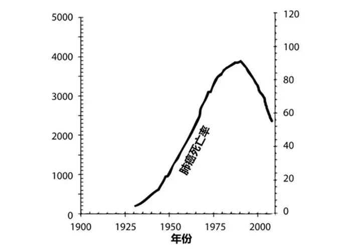 上面这张图,是美国80年来的肺癌死亡率曲线图。