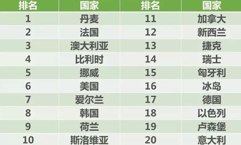更让人万万想不到的是,排名前二十的国家,竟然大部分都是欧美国家。