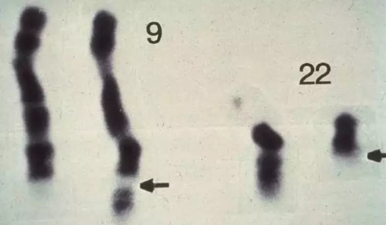 经过几年观察,他俩终于找到了引发慢粒白血病的罪魁——22号染色体变短了。