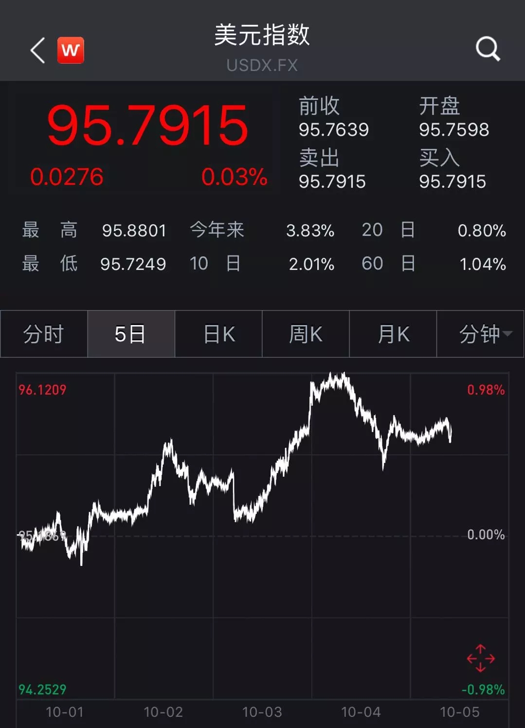 鲍威尔这番话,对许多投资者来说无异晴天霹雳。话音未落,美元指数大涨,讲话期间一度逼近96关口,日内涨幅0.5%左右。采访结束后,在纽约尾盘升破96,创六周新高。
