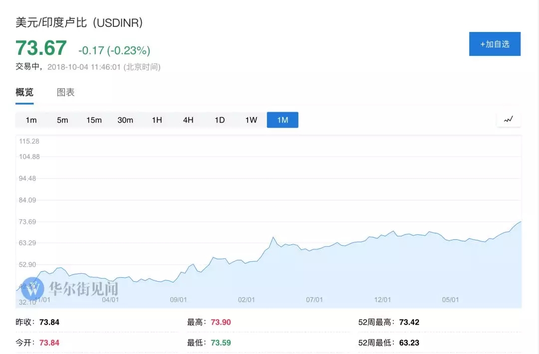 印度卢比对美元一度跌至73.77,创20年来新低,成为年初至今亚洲(如果土耳其除外)表现最差的货币。