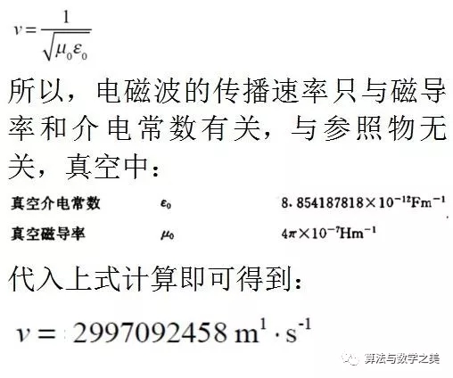 光速竟只与真空介电常数和真空磁导率有关,如上图所示,它是一个恒定值。