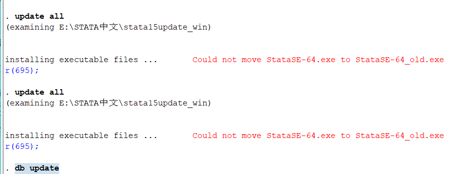 以管理员身份运行stata15,然后再离线更新。看看是否能够解决