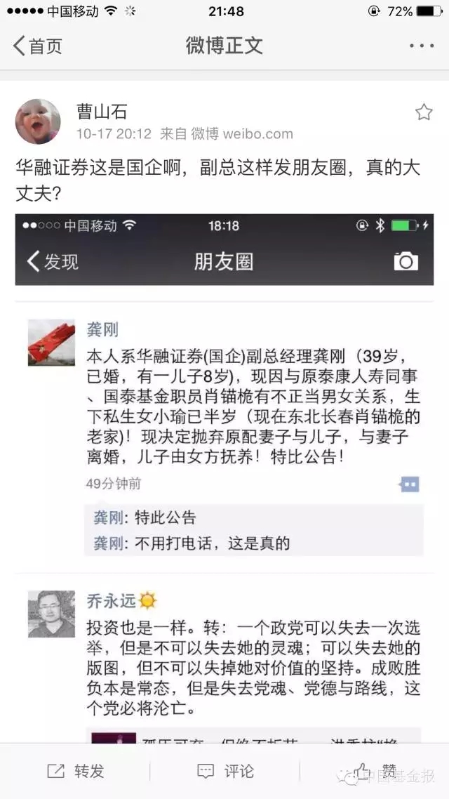 这条朋友圈,想必是怒火中烧的龚夫人所发。覆水难收,龚、肖两位同学,以后在金融圈基本比较难混了……